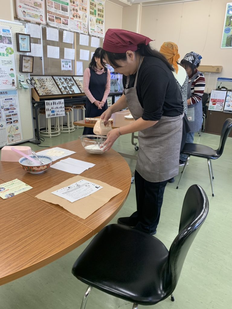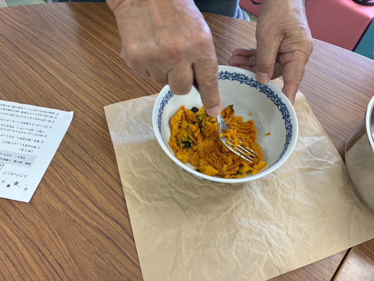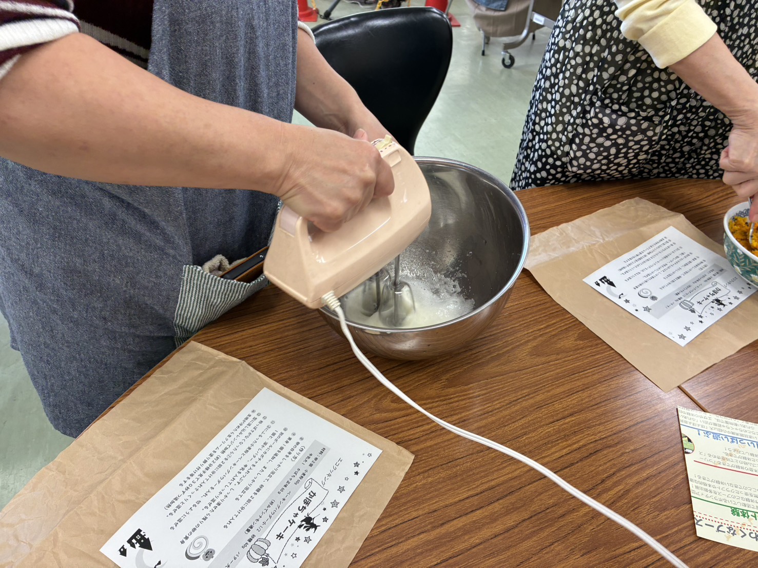 かぼちゃを丁寧につぶし、砂糖や卵、小麦粉を加えて生地を作ると、会場は甘い香りに包まれました。