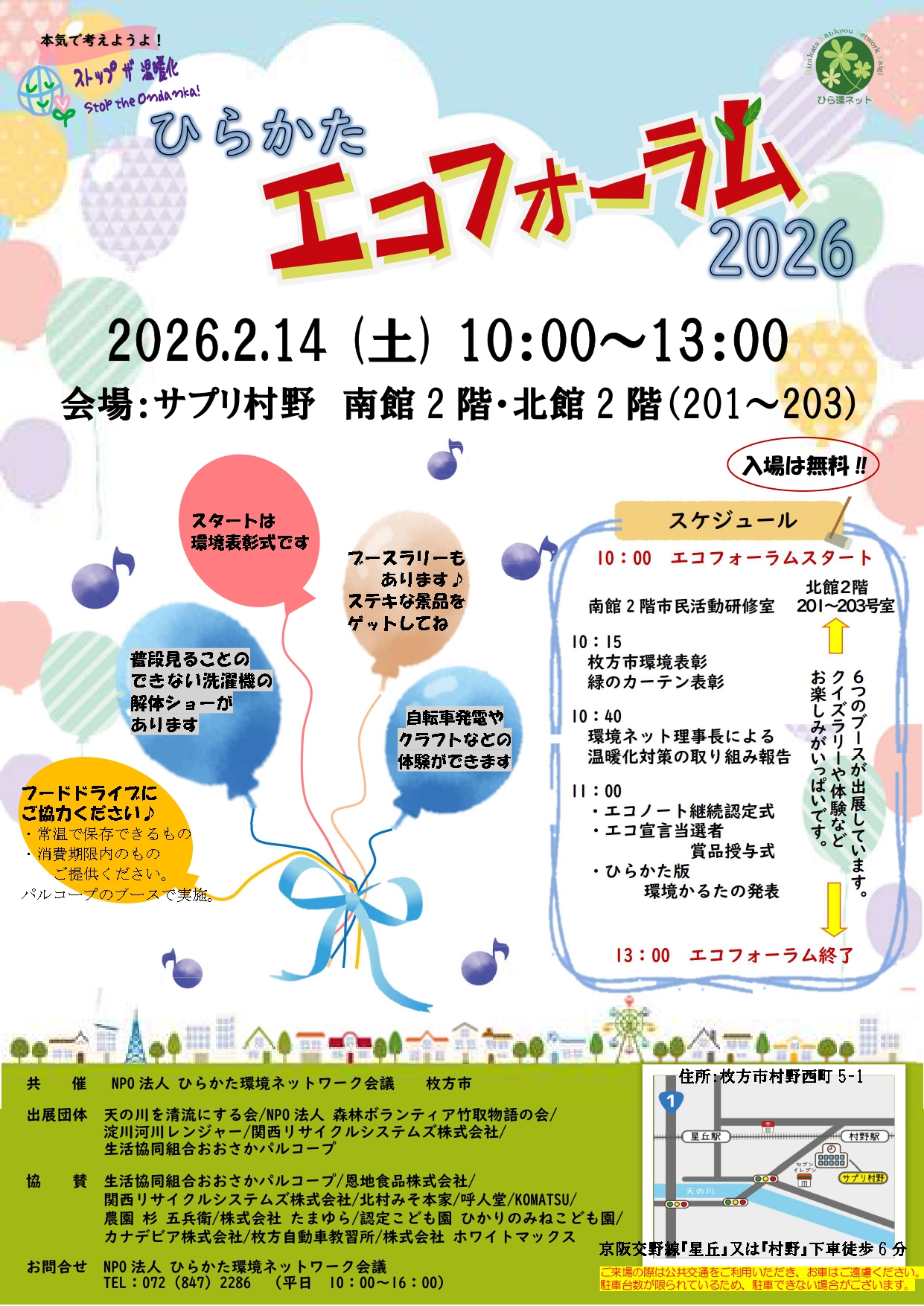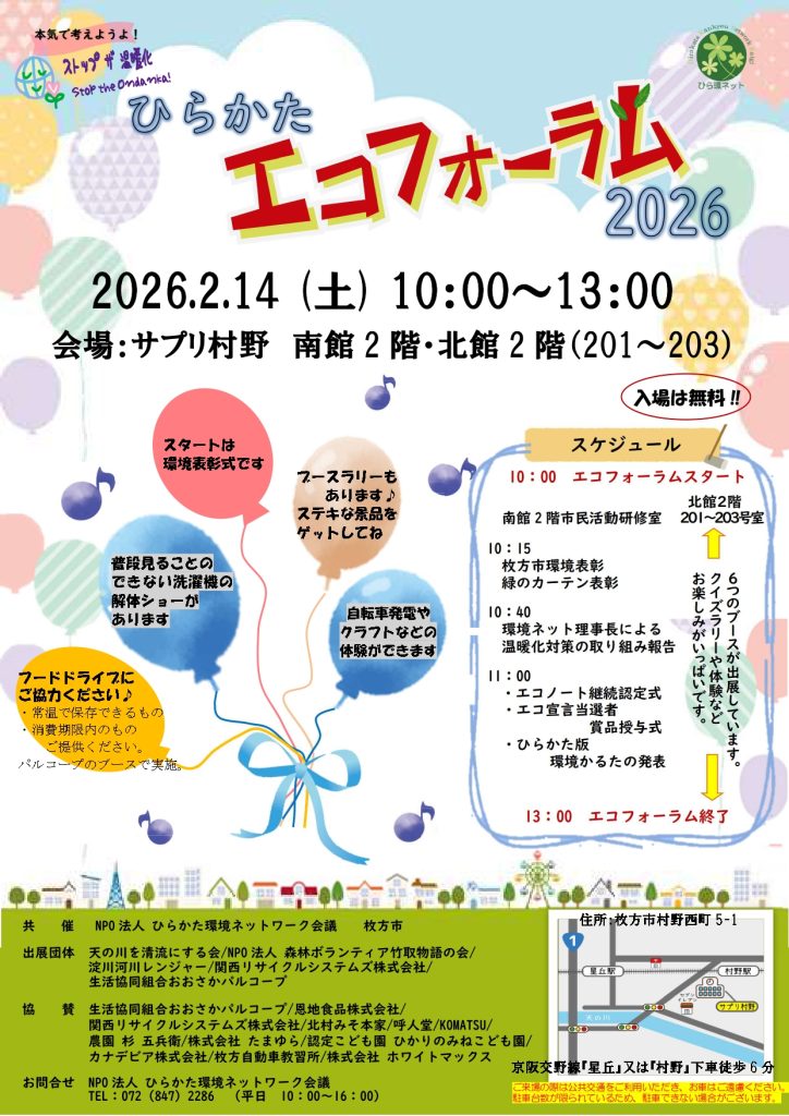 (枚方市環境表彰、エコノート認定式、エコ宣言当選者発表、ひらかた環境かるたの発表など)